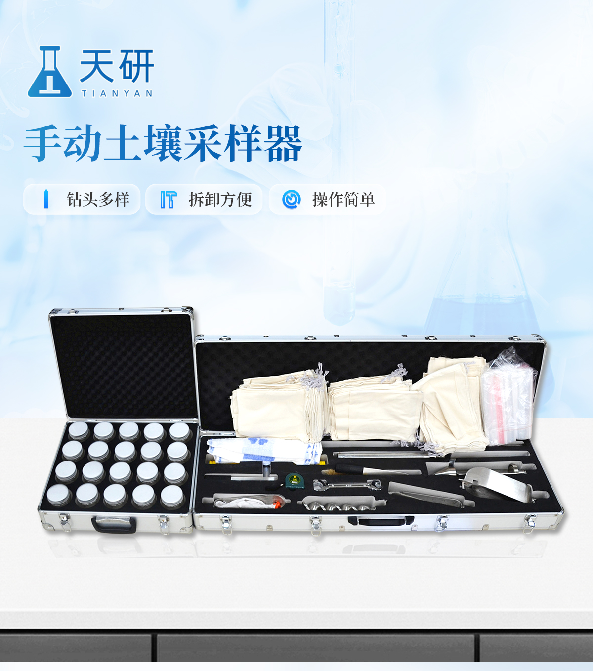 TY-QY04手動(dòng)土壤采樣器綜合套裝,土壤采樣器、污泥采樣器、標(biāo)準(zhǔn)采樣設(shè)備。 | 可采集不同質(zhì)地土壤樣品, | 拆卸方便、體積小便于戶外攜帶, | 操作簡單。 |
