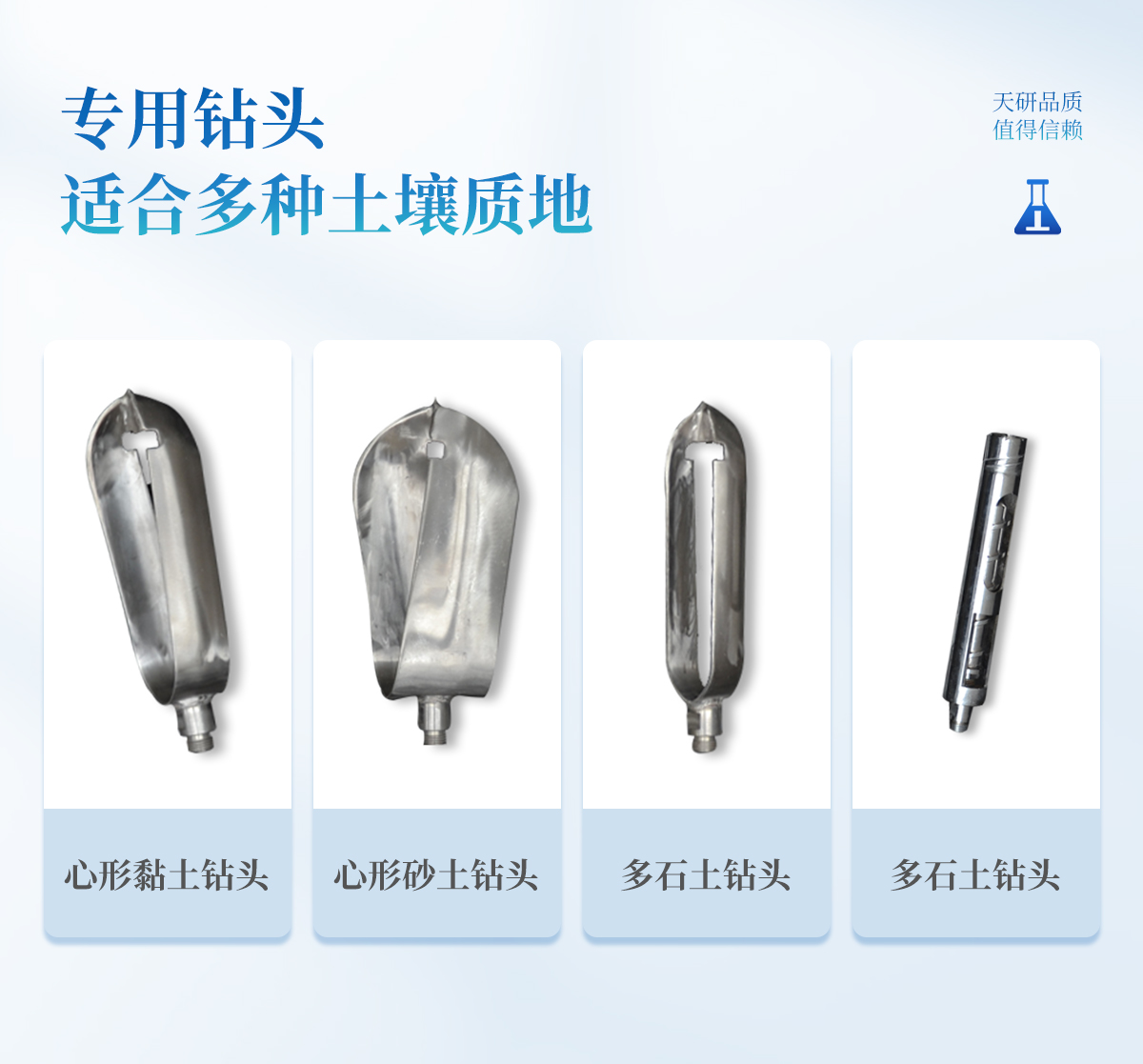 可針對(duì)不同直徑的土壤顆粒配備不同的專用鉆頭,對(duì)不同深度和區(qū)域的土壤進(jìn)行合理采樣和分類。 |