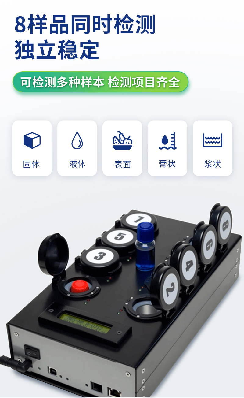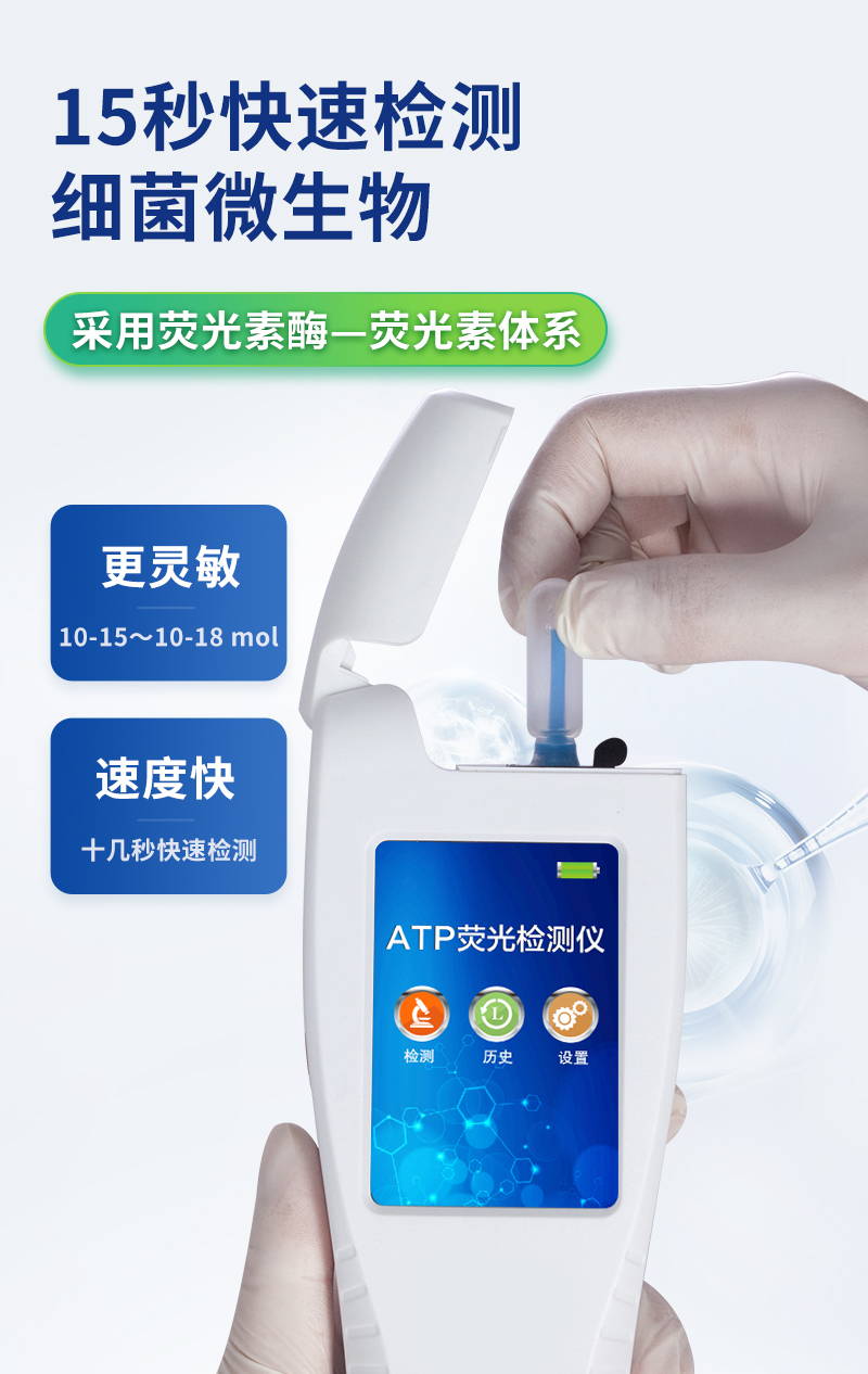 實用性 —— 可根據(jù)環(huán)境檢測需求設(shè)定上下限值,做到數(shù)據(jù)快速評估預(yù)警,表面潔凈度快速篩查。 | 靈敏度高 —— 10-15~10-18 mol | 速度快 —— 常規(guī)培養(yǎng)法18-24h以上,而ATP只需要十幾秒鐘 . | 可行性 —— 微生物數(shù)量與微生物體內(nèi)所含ATP有明確的相關(guān)性。 通過檢測ATP含量,可間接得出反應(yīng)中微生物數(shù)量 | 可操作性 —— 傳統(tǒng)培養(yǎng)方法需要在實驗室由經(jīng)過培訓(xùn)的技術(shù)人員進行操作;而ATP快速潔凈度檢測操作非常簡便,只需簡單的培訓(xùn)即可由一般工作人員進行現(xiàn)場操作。 | 體驗更好 —— 試子套管采用插拔式靈活設(shè)計,可定期清洗長期使用,延長儀器壽命。 |